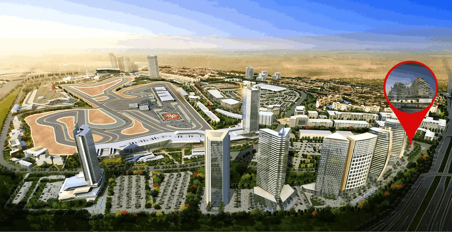 The community is designed to provide a self-sufficient living environment where residents can enjoy motorsport culture's excitement and well-planned residential spaces' serenity.