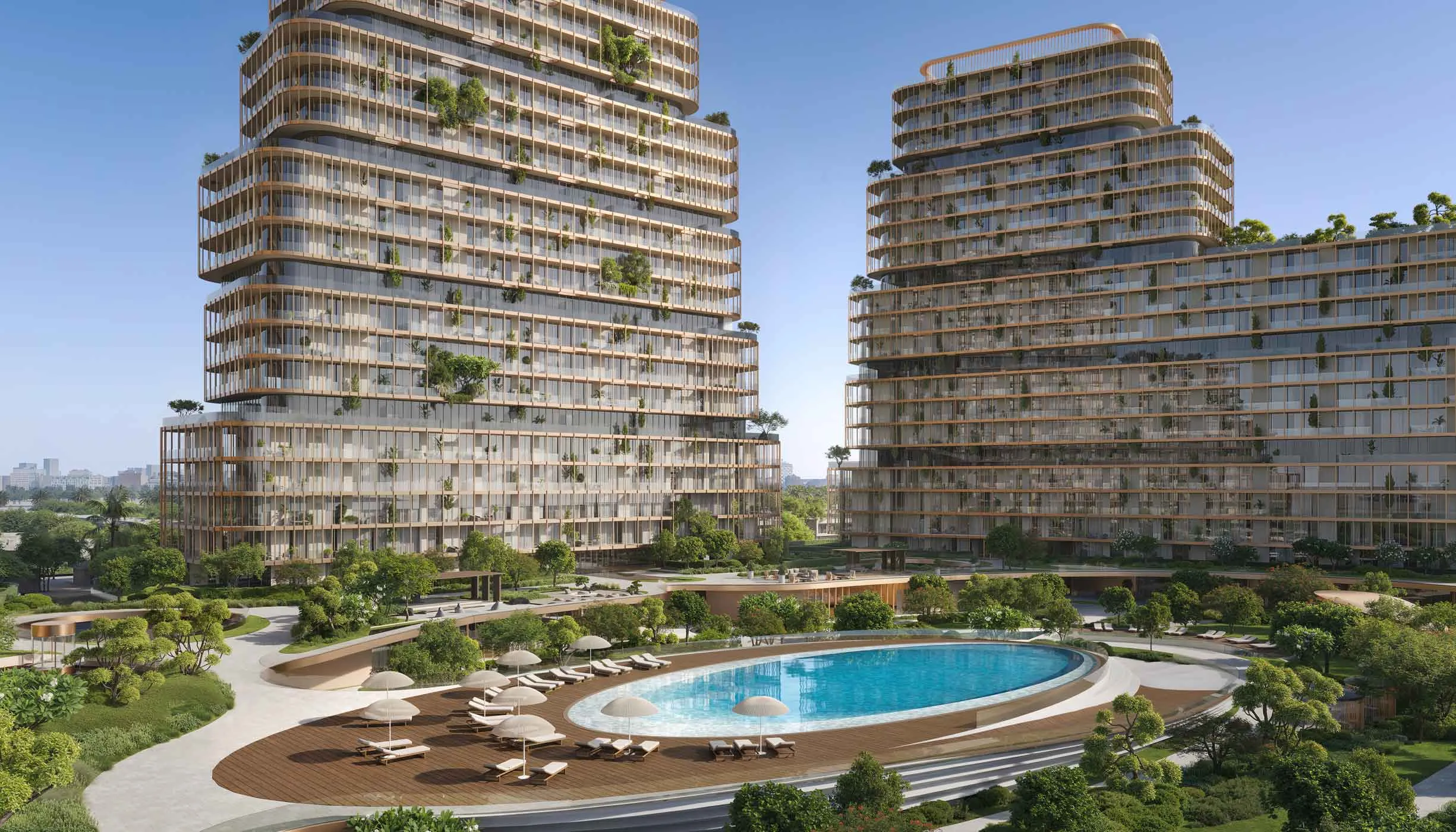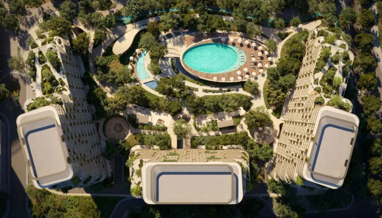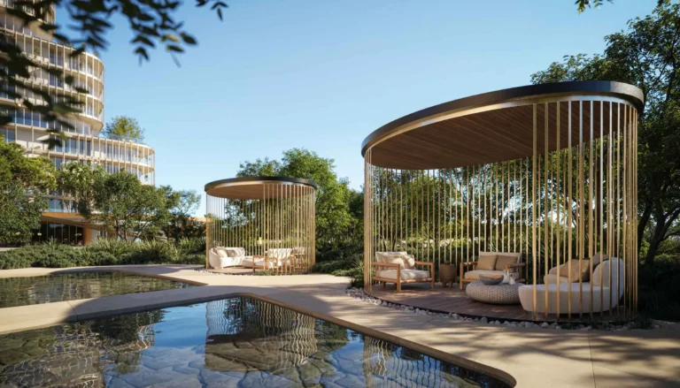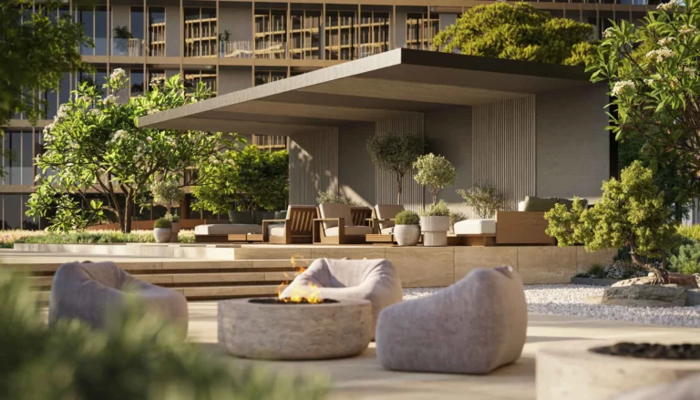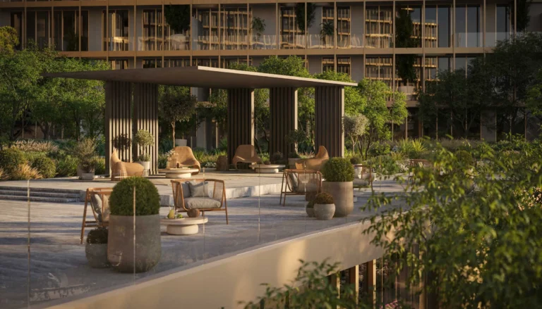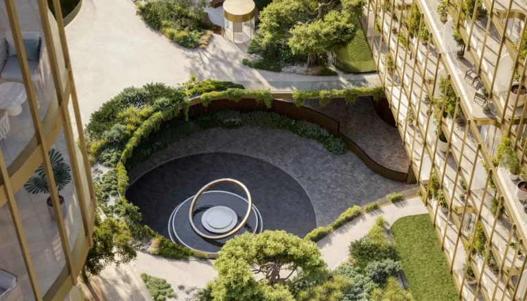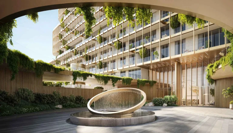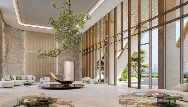 The project focuses on wellness and meaningful living, blending natural textures, serene waterfront landscapes, and tranquil green spaces into its design .