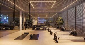 Modern Fitness Center: Gym, sports courts, and play zones for all ages.