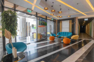Izzzi.LifeMINT is located in Jumeirah Village Circle (JVC), a community designed to blend modern living with natural surroundings, featuring tree-lined streets and parks .