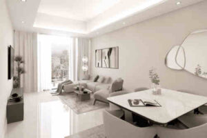 Nuaimia Two Tower by GJ Properties offers a sophisticated modern lifestyle with a range of spacious apartments. These off-plan properties for sale in Ajman are designed with high-end finishes, equipped kitchens, and large balconies providing panoramic city views, all scheduled for handover in Q4 2026 .