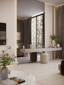 Q Gardens Loft is a masterfully designed architectural project that offers a unique blend of classic and modern aesthetics for a premium urban living experience . The development features high-quality finishes, including marble countertops and a complete range of appliances, ensuring comfort and elegance .