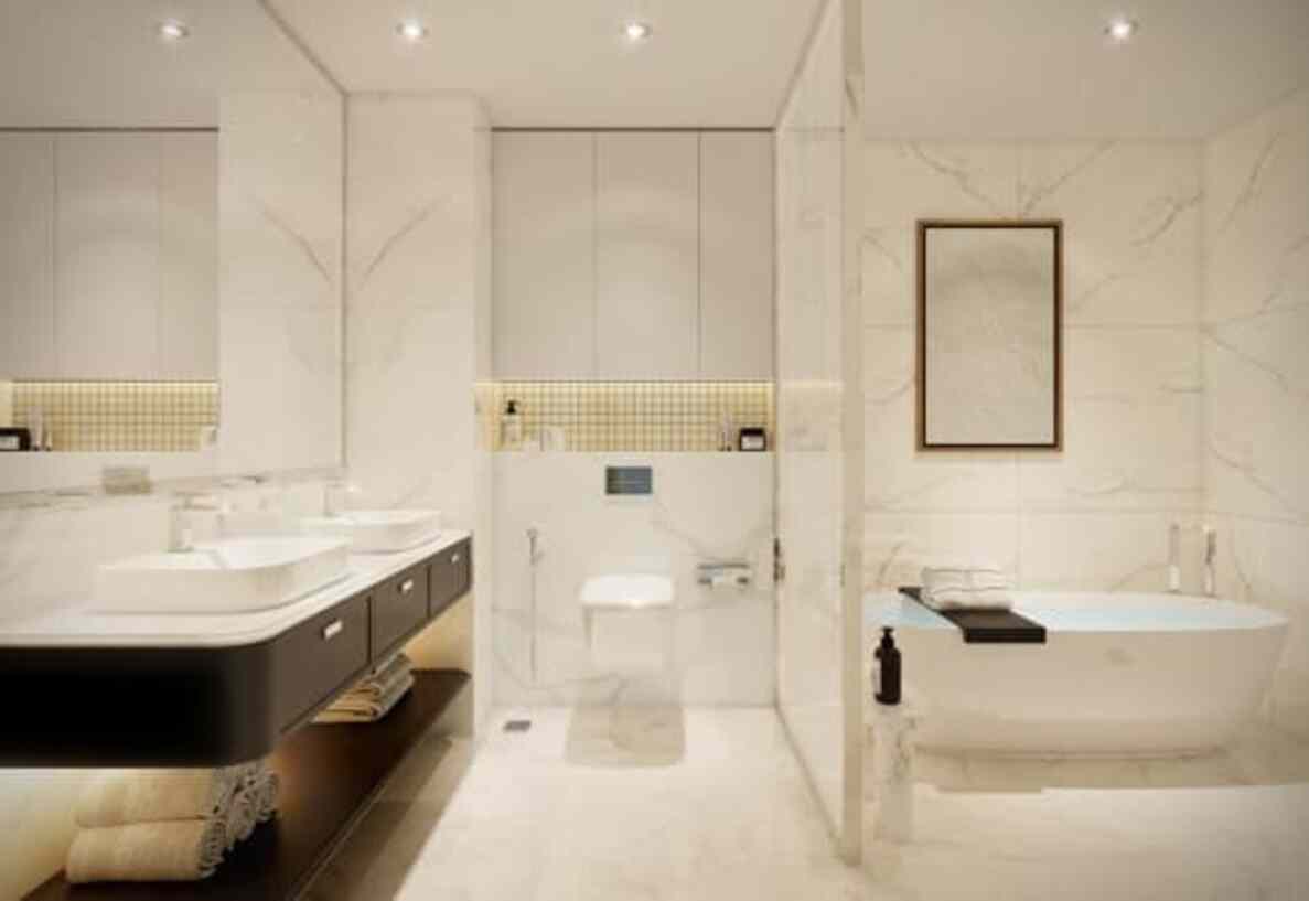 Residents can enjoy unparalleled amenities designed for leisure and entertainment . The interiors feature high-end finishes, including calacatta marbled walls, porcelain flooring, and floor-to-ceiling balcony windows with panoramic views .