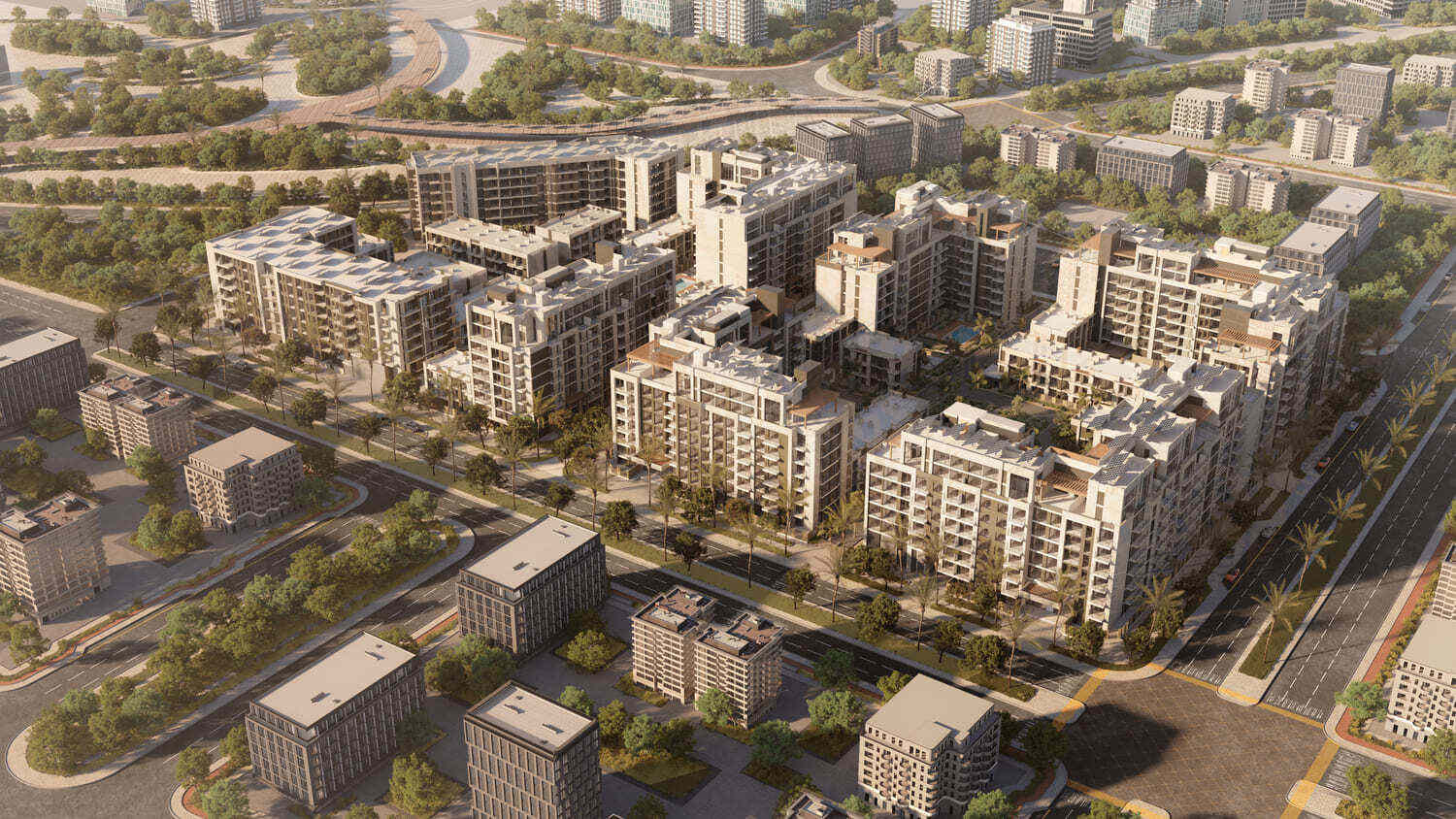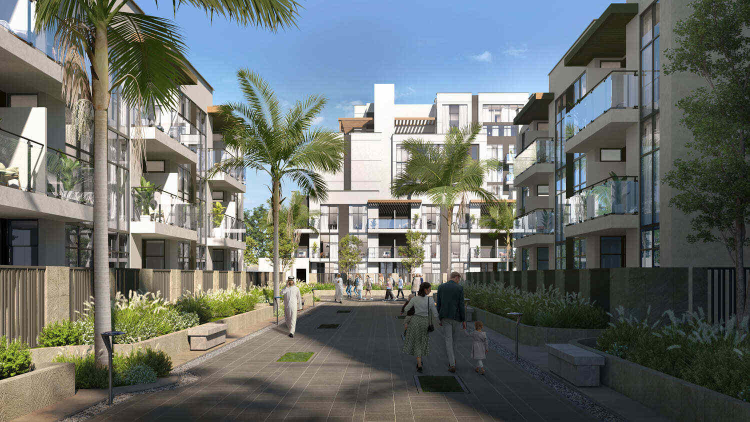 Royal Park is nestled in Masdar City, Abu Dhabi, a visionary urban hub that embodies sustainability and innovation . The community is designed to be pedestrian-friendly, with shaded walkways and public spaces encouraging social interaction and a vibrant sense of togetherness. It is located amidst the lush greenery of Masdar Central Park .