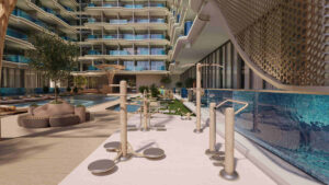 Samana Imperial Gardens by Samana Developers offers a regal living experience with its 2B + G + 6floors + R floor structure featuring exclusive apartments. These off-plan properties for sale in Arjan are designed for those who seek a blend of luxury and tranquility, complete with private swimming pools in select units, embodying an imperial lifestyle.
