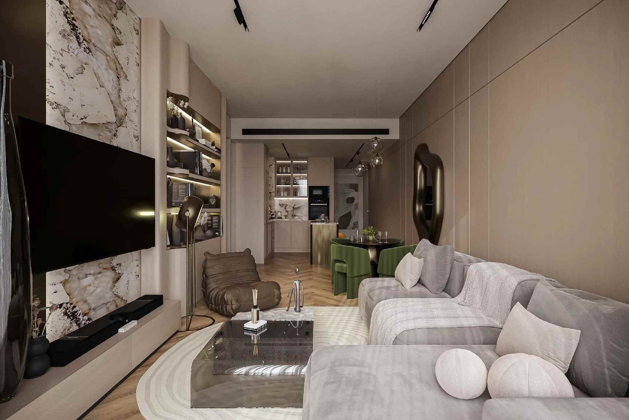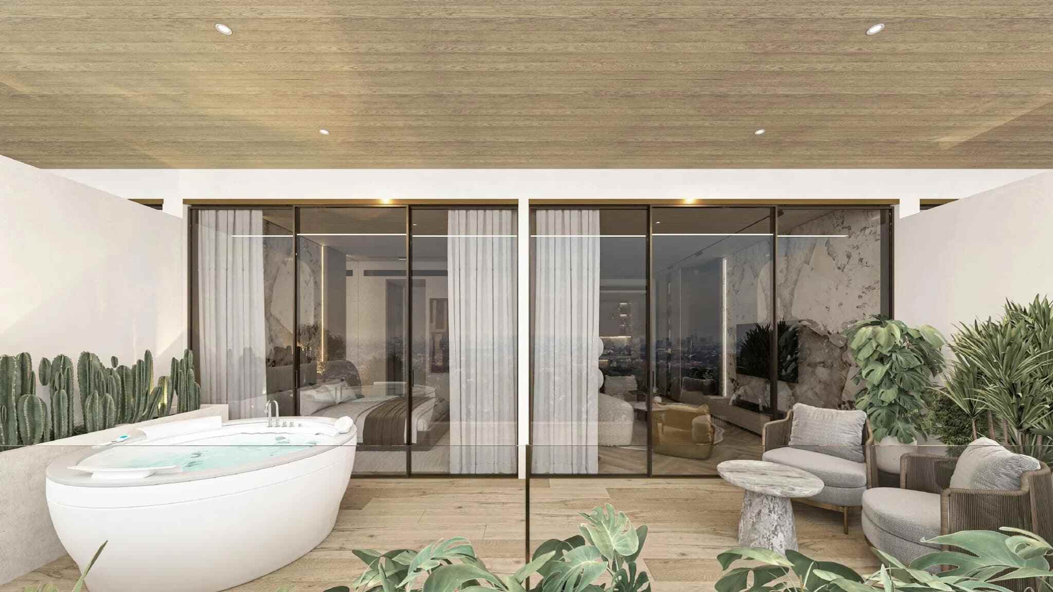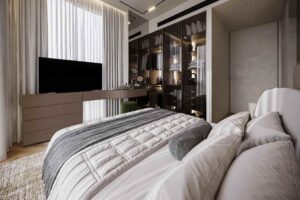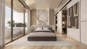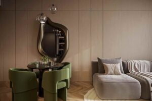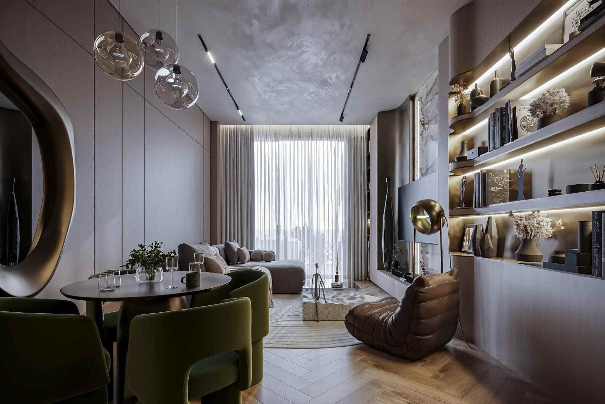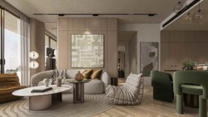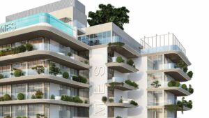 Sky Line by Peace Homes is an architectural statement of modern luxury, offering off-plan properties for sale in Dubai Land Residence Complex (DLRC). This project features a tower with clean contours, cascading green terraces, and an iconic vertical silhouette, harmonizing natural elements with contemporary design. The refined residences boast elegant designs, warm textures, high-end detailing, and floor-to-ceiling windows to create a calm and inviting atmosphere.