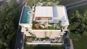 Features include a rooftop infinity pool, fitness centre, outdoor cinema, and comprehensive recreational facilities
