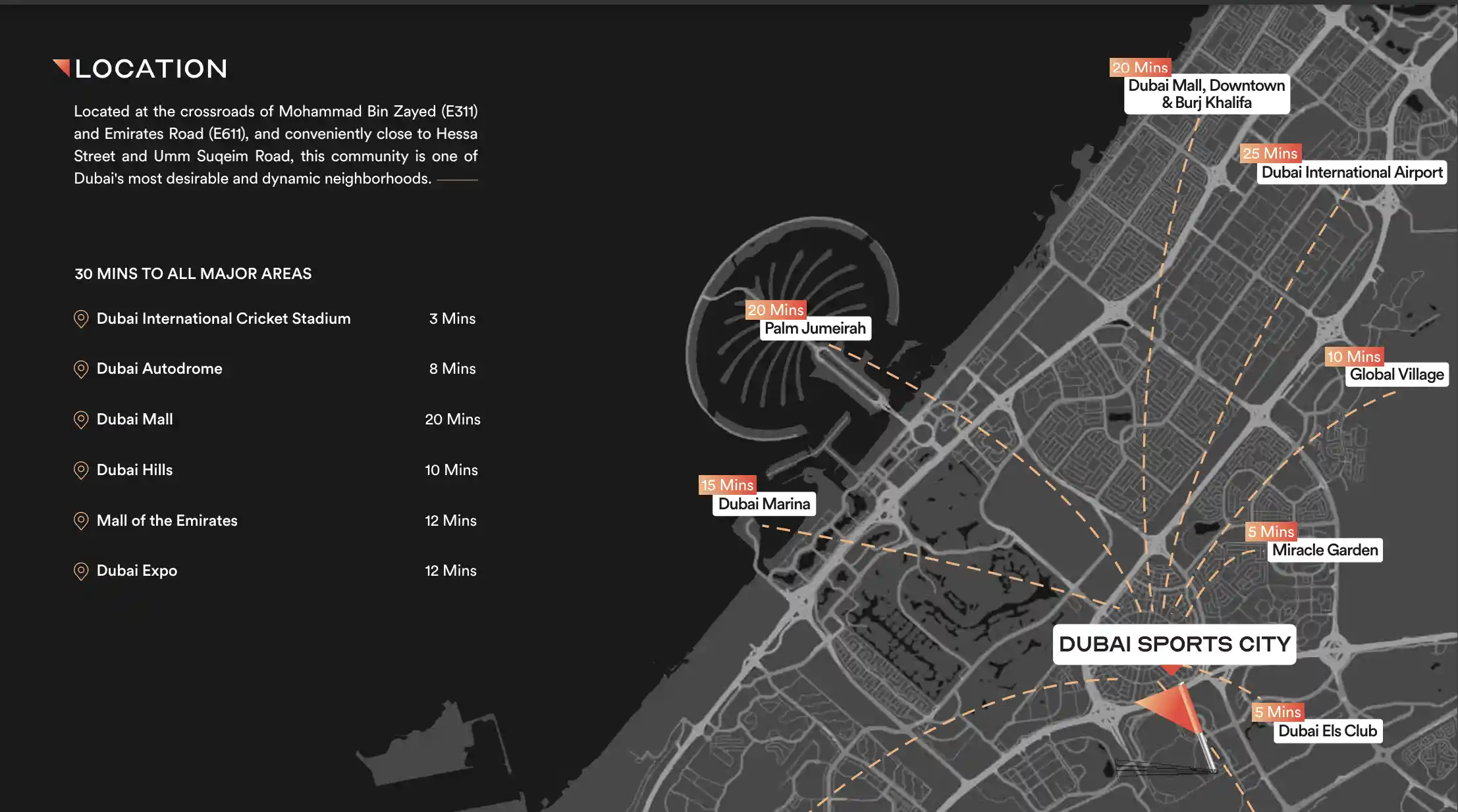 Dubai Sports City is a well-connected area known for its sporting academies, stadiums, and residential communities. Nearby locations and attractions typically include:
